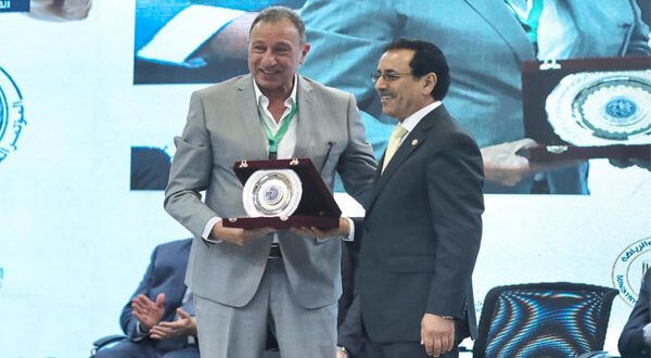 مدير عام المنظمة العربية للتنمية الإدارية يُهدي الخطيب درع المؤتمر العربي الثاني للرياضة والقانون