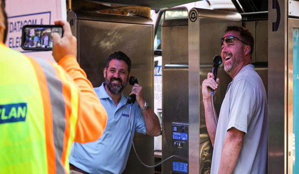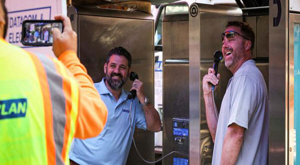 هي بحق نهاية حقبة.. قام عمال المرافق في نيويورك بالتقاط صورتين أخيرتين قبل إزالة آخر كابينة للهواتف العمومية في مانهاتن في منطقة تايمز سكوير.. بالطبع تم التقاط الصورة بهاتف محمول.