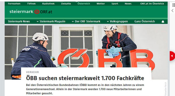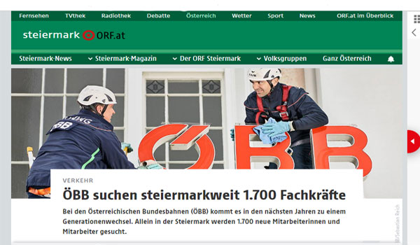 أنه من المقرر إتاحة هيئة القطارات النمساوية ” ÖBB” عدد من الوظائف بينها 1700 وظيفة منهم في ولاية إشتاير مارك وحدها في جميع التخصصات ، خلال السنوات القليلة المقبلة، لافتا إلى أن الشروط لا تتضمن الخبرة المسبقة.