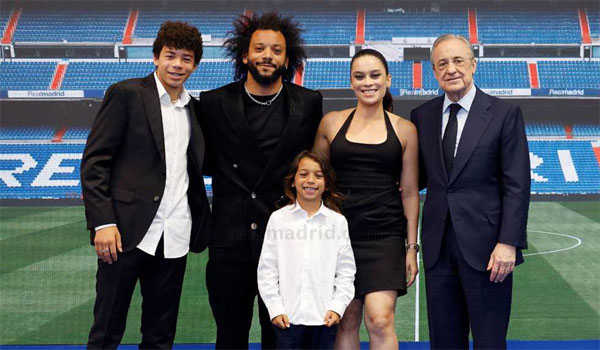 وعقد ريال مدريد مؤتمرًا تكريميًا لـ مارسيلو في المدينة الرياضية “فالديبيباس” في حضور فلورنتينو بيريز رئيس النادي وأسرة اللاعب.