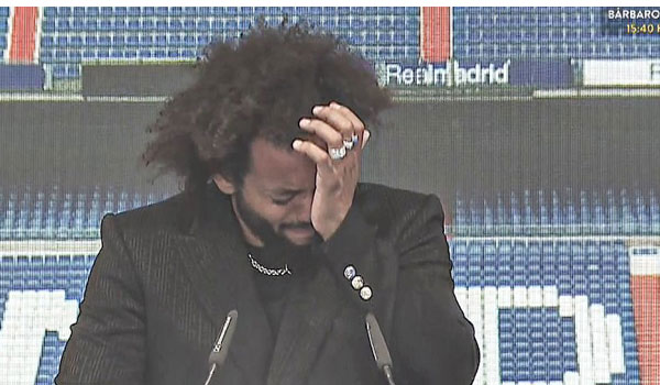 ودّع مارسيلو قائد ريال مدريد ناديه بعد 15 عامًا في صفوفه، خلال مؤتمر صحفي مليء بالمشاعر.