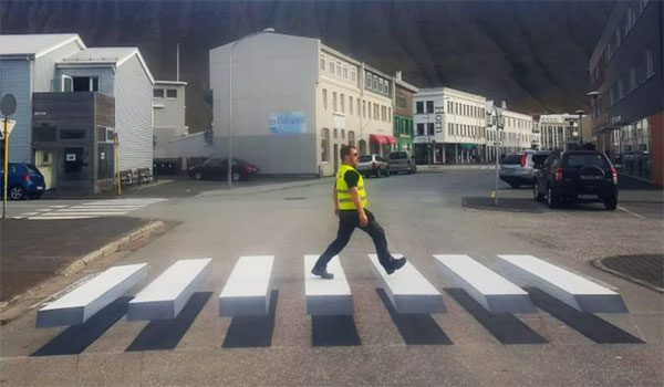 في خطوة تهدف لحماية المشاة وإجبار السيارات على تخفيف السرعة، صممت شركة Vegamálun GÍH طريقة ولا أذكى عبر تقنية الوهم البصري في أحد شوارع آيستلندا.