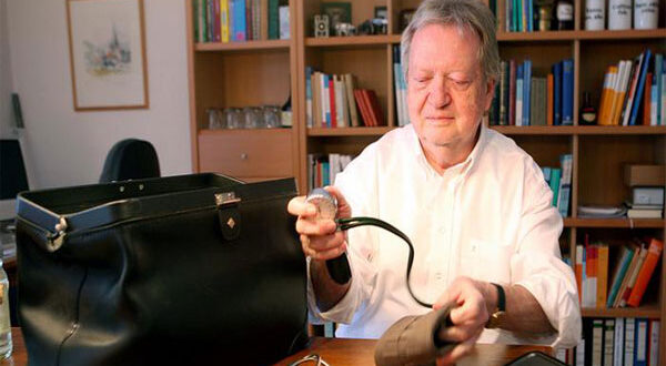 من بين هؤلاء الأطباء الطبيب أوفه دينكر، فالطبيب المتقاعد رسمياً منذ 16 عاماً لم يفكر يوماً بالتقاعد كلياً “لا يمكنني التخلي عن مرضاي” يقول الطبيب البالغ من العمر 84 عاماً. في غرفة خصصها لعلاج المرضى الذين لا يملكون تأميناً صحياً، يعالج أوفه مرضاه.