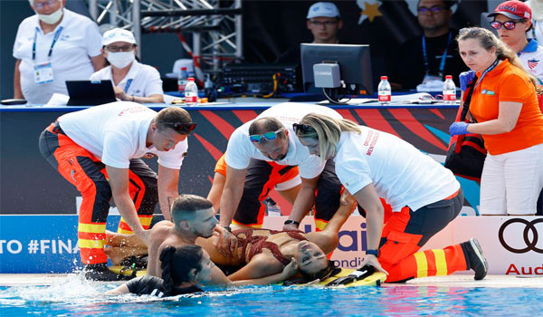 وقفزت مدربتها الإسبانية أندريا فوينتس لإنقاذ ألفاريس التي تبلغ من العمر 25 عاما، بعد غرقها في قاع المسبح وفقدانها القدرة على التنفس خلال أدائها في نهائي فئة الفردي الحر في السباحة الإيقاعية، الأربعاء.