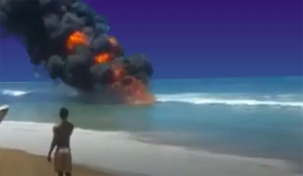 فيما أشارت بعض التعليقات في هذه المواقع إلى أن الفيديو يصوّر اشتعال أنبوب للنفط تحت الماء.