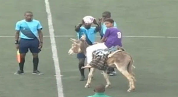 تداول رواد مواقع التواصل مقطع فيديو لأحد الأشخاص يدخل ملعبا على ظهر حمار في نهائي دوري دولة إفريقية.
