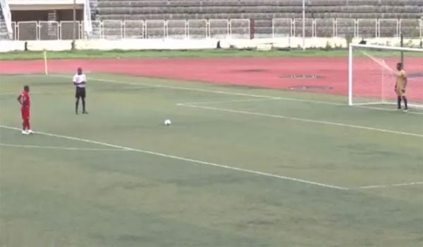 كما أظهر الفيديو إقدام أحد لاعبي ريمو ستارز على تسديد ضربة ترجيح بطريقة غريبة، جعلتها بعيدة عن المرمى كثيرا.