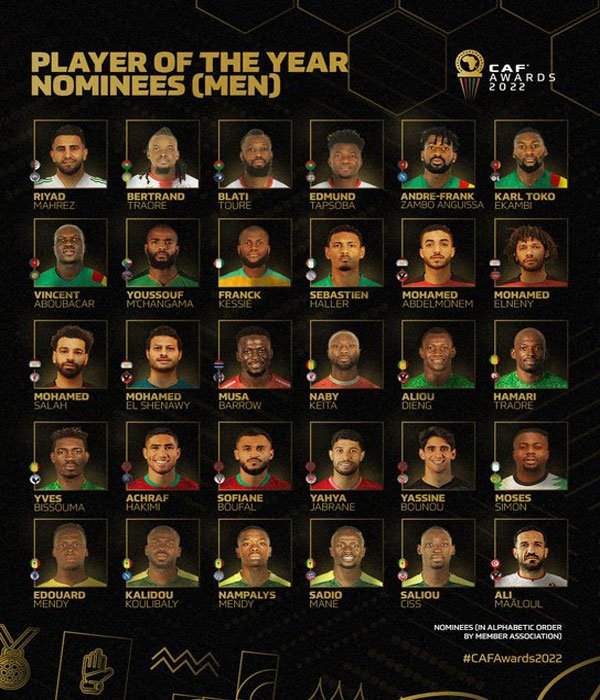 ونشرت الصفحة الرسمية للاتحاد الأفريقى على موقع تويتر قائمة اللاعبين، “ثلاثون لاعبًا من 13 دولة يتنافسون من أجل لقب الأفضل.. القائمة الأولية للمرشحين لجائزة أفضل لاعب في إفريقيا “.