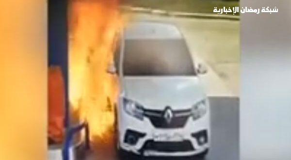 بالفيديو – مدخن يضرم النيران في نفسه دون قصد.. حاول إشعال سيجارة بمحطة البنزين