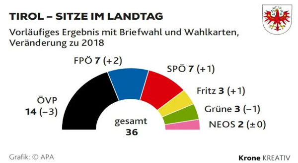 وانخفضت شعبية حزب الشعب ÖVP من 44% في الانتخابات السابقة إلى 34% في الانتخابات الحالية، في أخفض نتيجة للحزب في الانتخابات المحلية لتيرول منذ الحرب العالية الثانية.