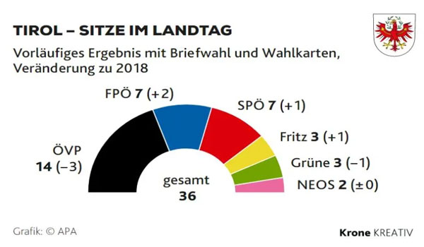 ورغم أن الحزب الديمقراطي الاجتماعي SPÖ يتقدم في استطلاعات الرأي على مستوى النمسا، إلا أنه فشل في تحقيق اختراق حقيقي في الانتخابات المحلية لمقاطعة تيرول.