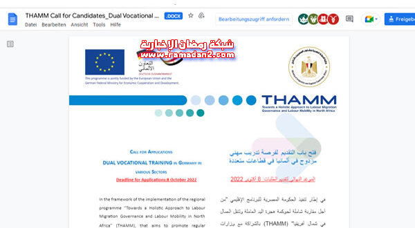 يأتي ذلك في إطار الدور المنوط بوزارة الهجرة لتنفيذ البرنامج لآلية تنقل للتدريب والعمل في ألمانيا، في ضوء تنفيذ الحكومة المصرية للبرنامج الإقليمى «من أجل مقاربة شاملة لحوكمة هجرة اليد العاملة وتنقل العمال في شمال أفريقيا» (THAMM) بالشراكة مع وزارات وجهات وطنية ودولية والذى يهدف إلى تعزيز الهجرة النظامية وتنقل اليد العاملة بين دول المنشأ والمقصد.