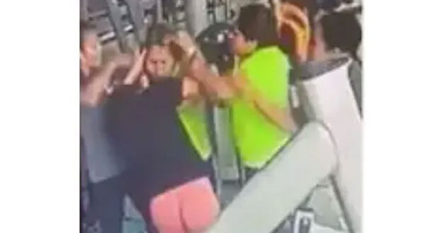 بعد ذلك بقليل، تندفع النساء الأخريات لفض شجار الجيم العنيف، لكن النساء يواصلن شد شعر بعضهن البعض.