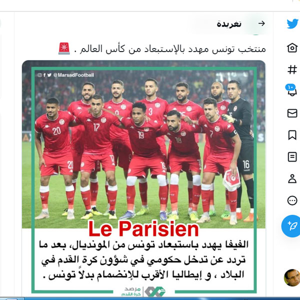 وأشار راديو مونت كارلو الفرنسي إلى أنه في حال تم استبعاد منتخب تونس من النهائيات، سيتم توجيه الدعوة لمنتخب إيطاليا، ليشارك في مونديال قطر.