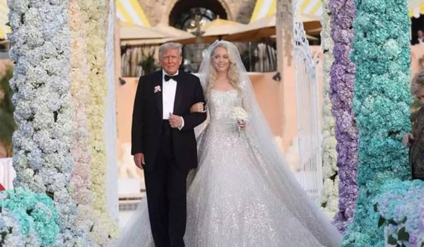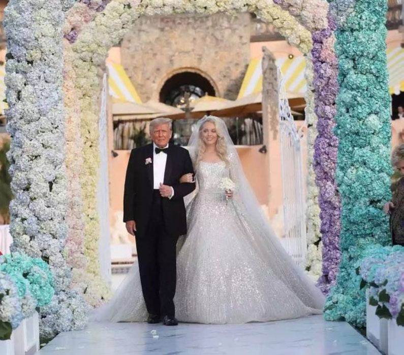 زف الرئيس الأمريكي السابق، دونالد ترامب، ابنته، تيفاني (29 عاما)، لرجل أعمال عربي، في حفل حضره جميع أفراد العائلة في مارا لاغو، بولاية فلوريدا.
