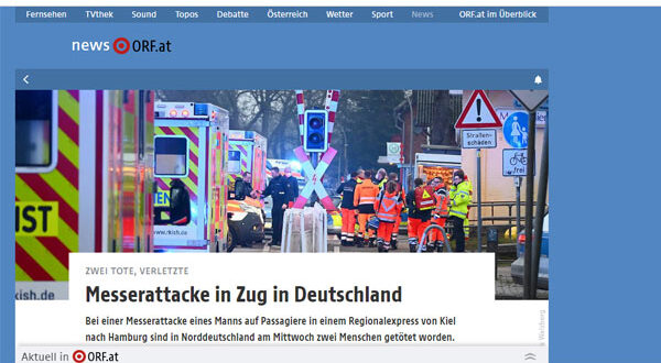 وقال متحدث باسم شرطة فلنسبورغ، إن الهجوم وقع بعد ظهر الأربعاء على قطار إقليمي بين هامبورغ ومدينة كيل في ولاية شليسفيغ هولشتاين.