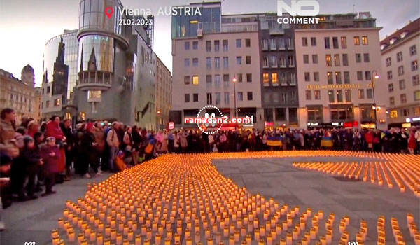 بالفيديو – شاهد بحر من الشموع تضامنا مع الأطفال الأوكرانيين في قلب العاصمة فيينا