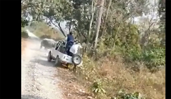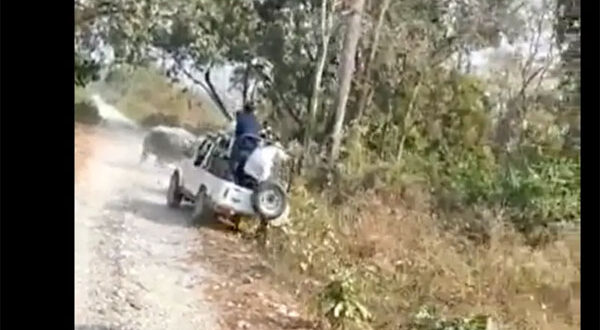 وظهر وحيد القرن غاضباً وهو يهاجم السيارة التي كان السياح يستقلونها، ليقوم بقلبها بعد ضربها، بحسب الفيديو الذي نشره موقع “إنديان إكسبرس”.