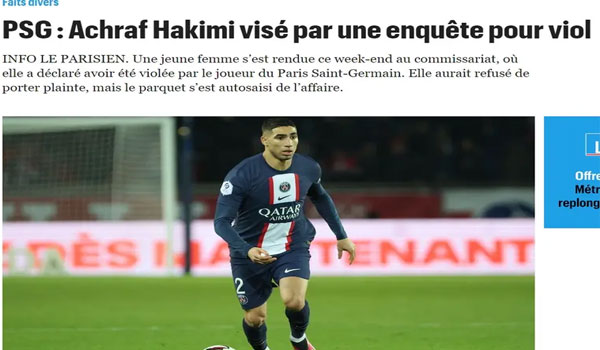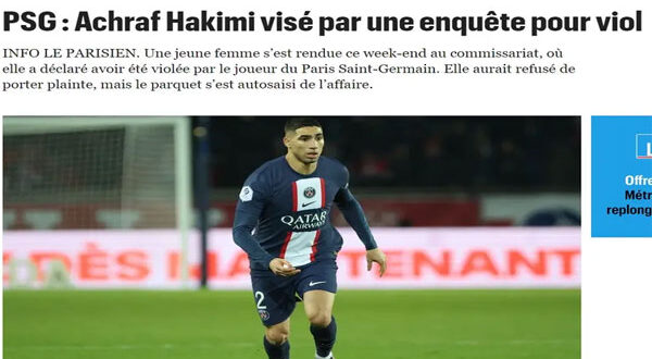 كشفت تقارير إعلامية فرنسية، يوم الاثنين، أن السلطات الفرنسية تحقق مع الدولي المغربي أشرف حكيمي، الظهير الأيمن لباريس سان جيرمان، بعد أن زعمت شابة أنها تعرضت للاغتصاب من قبل اللاعب نهاية الأسبوع الماضي.