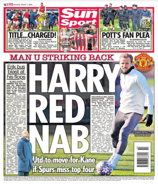 وأخيرًا كتبت صحيفة “ذا صن”: “اليونايتد سيتحرك صوب كين في حال لم يحتل السبيرز أحد المراكز الأربعة الأولى”