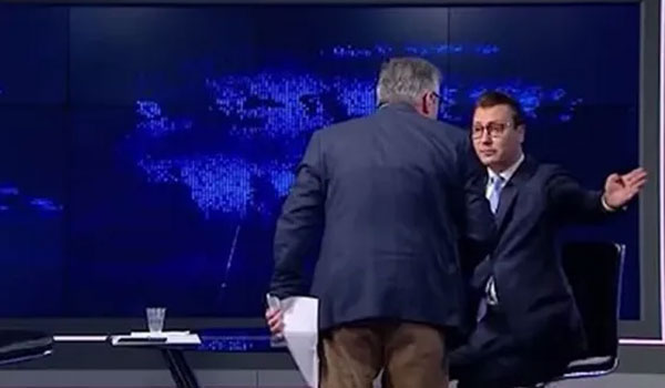 تسبب طرد المحلل السياسي التركي أوكتاي يلماز، على الهواء مباشرة، خلال حلقة حوارية عبر قناة “أورينت” السورية، في توقيف مدير القناة علاء فرحات ومذيع الحلقة أحمد ريحاوي.