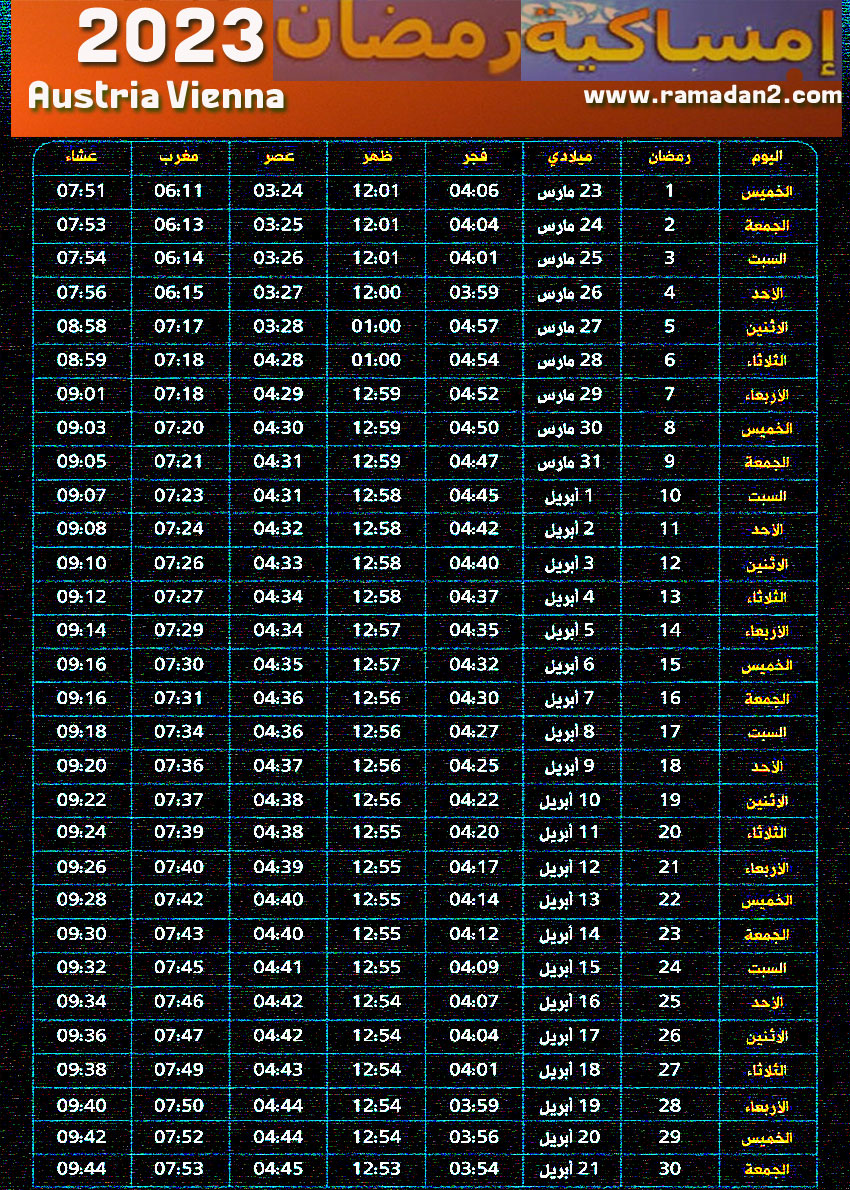 موعد رمضان في النمسا حسب التقويم الميلادي
