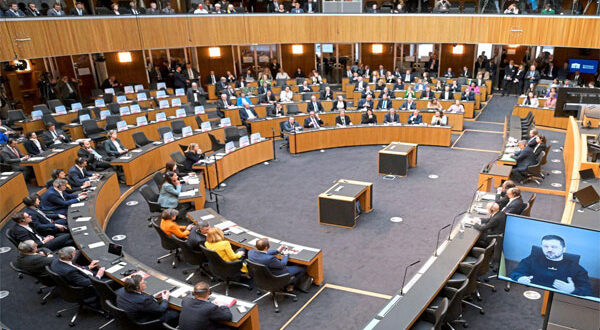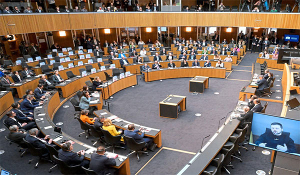 غادر أكثر من 20 عضوا تشريعيا ينتمون لحزب الحرية اليمينى “FPÖ” قاعة البرلمان النمساوي في أثناء خطاب للرئيس الأوكراني زيلينسكي.