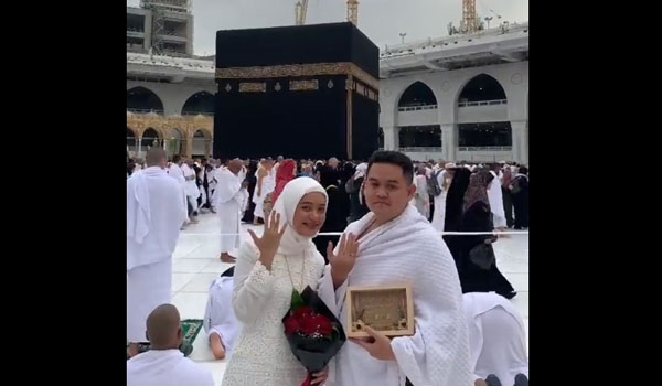 وثق مقطع فيديو، لحظة عقد قران شاب على فتاة من إندونيسيا، بملابس الإحرام، في مطاف الحرم المكي الشريف.