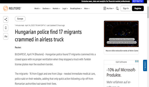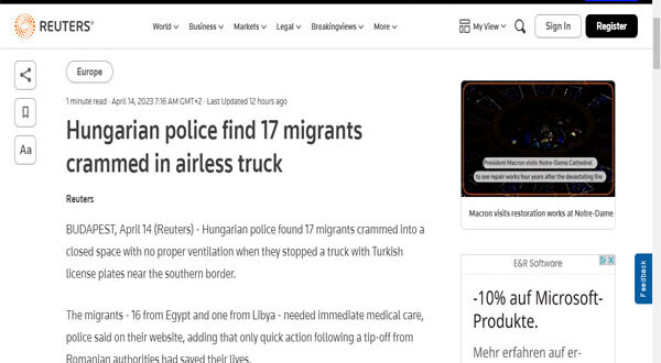 عثرت الشرطة المجرية، الخميس 13 أبريل/نيسان 2023، على 17 مهاجراً مكدسين في مكان مغلق دون تهوية مناسبة، عندما أوقفت شاحنة تحمل لوحة ترخيص تركية بالقرب من الحدود الجنوبية، وحالتهم الصحية كانت متدهورة.