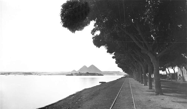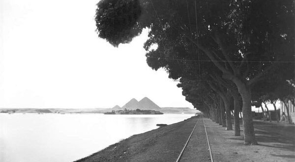نشرت محافظة الجيزة عبر صفحتها الرسمية على “فيس بوك” صورة نادرة لمياه النيل وهي تعانق الأهرامات سنة 1902م.