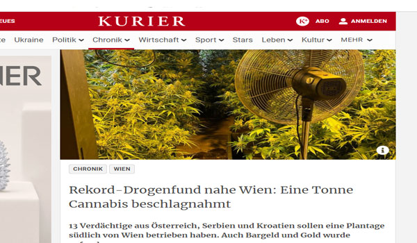 ألقت قوات الشرطة النمساوية القبض على 13 شخصًا بحوزتهم طن حشيش ومصادرة أموال سائلة بقيمة 300 ألف يورو وعملات ذهبية في فيينا والنمسا السفلى.