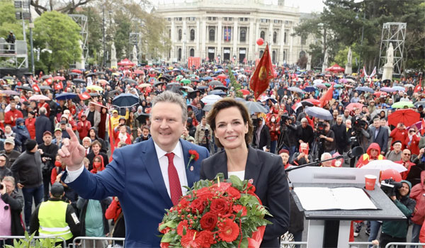 تجمع عشرات الآلاف اليوم من النمساويين اليوم الاثنين أمام مقر بلدية فيينا للاحتفال بعيد العمال. وتقدم الحضور باميلا راندي فاجنر رئيسة الحزب الاشتراكي الديمقراطي في البلاد وميخائيل لودفيج حاكم العاصمة النمساوية فيينا وقيادات الأحزاب اليسارية في البلاد.