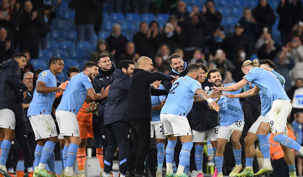 ومع انتهاء المباراة، تقدم غوارديولا الممر الشرفي للاحتفال بإنجاز هالاند التاريخي.