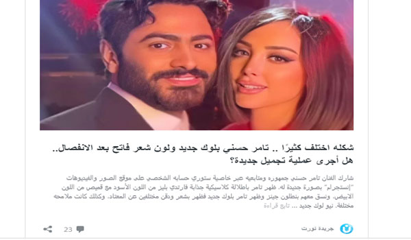 تعليق تامر حسني على خبر الانفصال