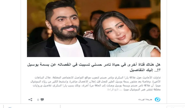 انفصال تامر حسني وبسمة بوسيل في ظروف غامضة