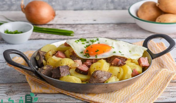 • بعد الانتهاء من تحضيرها، توضع بيضة مقلية على سطح الوجبة قبل التقديم.