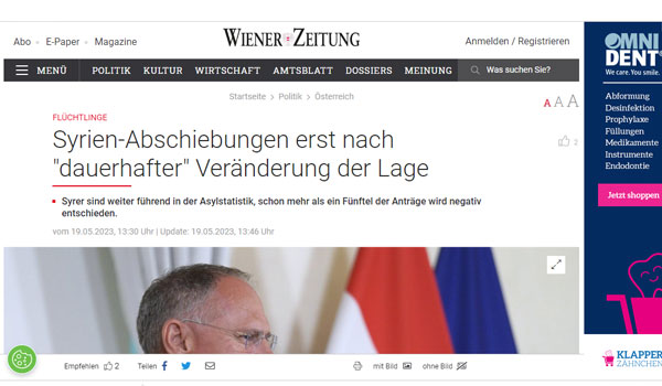 وقالت صحيفة فيينا في هذا الصدد، إن حظر الترحيل إلى سوريا لا يزال قائماً، وإن الداخلية النمساوية مستمرة في حظر عمليات الترحيل إلى سوريا ولكن تنتظر تقييم مكتب الهجرة واللجوء وبمجرد حدوث تغيير كبير على أرض الواقع في سوريا ربما يتم فك الحظر عن السوريين.