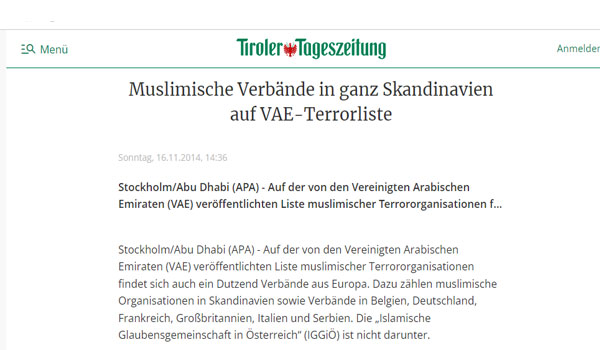 في عام 2014 ، وضعت دولة الإمارات العربية المتحدة IRW على قائمة 86 جماعة “إرهابية” محظورة ، إلى جانب العديد من المنظمات الإسلامية البارزة ، بما في ذلك مجلس العلاقات الأمريكية الإسلامية. واتهمت IRW بأنها فرع من جماعة الإخوان المسلمين ، وهي تهمة تنفيها.