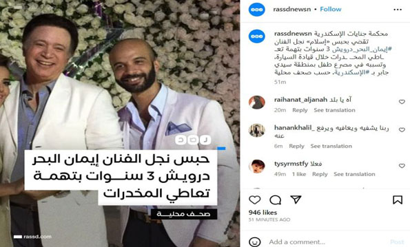 ورأى متابعون أن صدور الحكم ضد نجل الفنان إيمان البحر درويش بالتزامن مع نشر صورته الصادمة، ليس من باب المصادفة، حيث ربط البعض بينهما بمخالفة اتفاق بين العائلة والنظام أدى إلى هذا الامر.