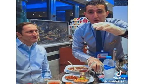 وتداول رواد مواقع التواصل الاجتماعي، مقطع فيديو لعلاء مبارك وهو يتناول الكشري في وسط البلد.