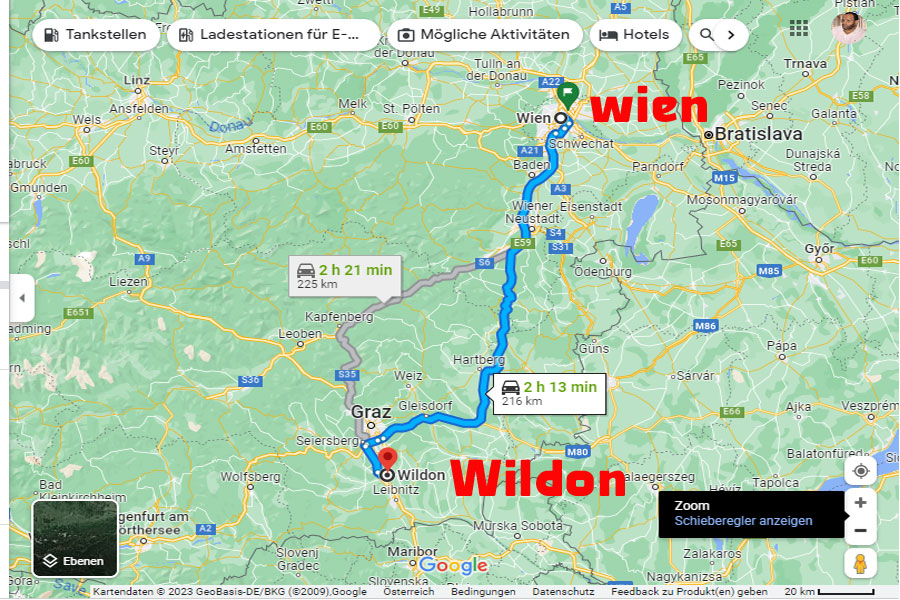 Bei Ausfahrt 202-Wildon Richtung Wildon fahren