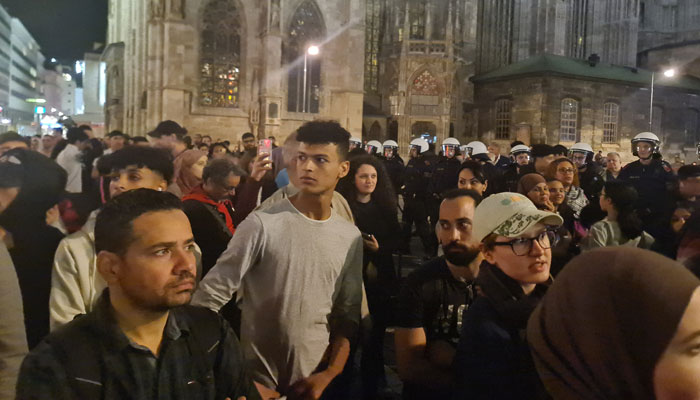 بالرغم من المعاملة الخشنة من قبل الشرطة النمساوية للمحتجين المشاركين في الوقفة الأحتجاجية، تجمع اليوم الأربعاء مساءّ الموافق 11 من أكتوبر 2023 المئات من أبناء الجالية العربية والإسلامية المقيمة بالنمسا فى ميدان ” شتيفان بلاتس” الواقع فى نواه مركز العاصمة النمساوية فيينا ، احتجاجا على العدوان الإسرائيلى على قطاع غزة.