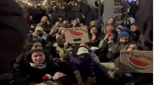 شاهد – متظاهرون ألمان يلجأون لحيلة ذكية لرفع العلم الفلسطيني في المظاهرات بعد حظره!