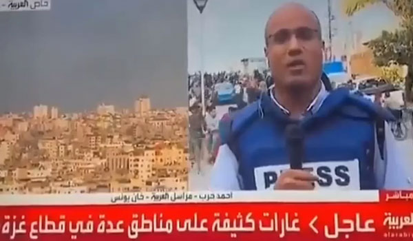 وكان المراسل أحمد حرب، يتحدث عن الوضع الأمني في منطقة “دقة” في بني سهيلا شرق مدينة خان يونس، حيث سقط 11 شهيداً حتى هذه اللحظة -كما قال- قبل أن يستدرك أحد عشر ضحية وعشرات الإصابات.