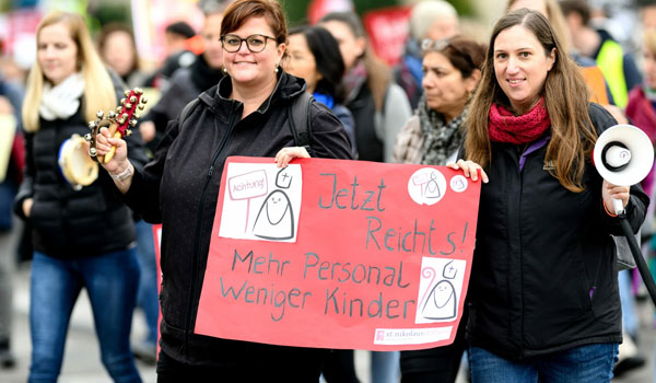صور وفيديو – تظاهرة إحتجاجية اليوم فى فيينا لمعلمين الحضانات لتحسين ظروف العمل والأجور