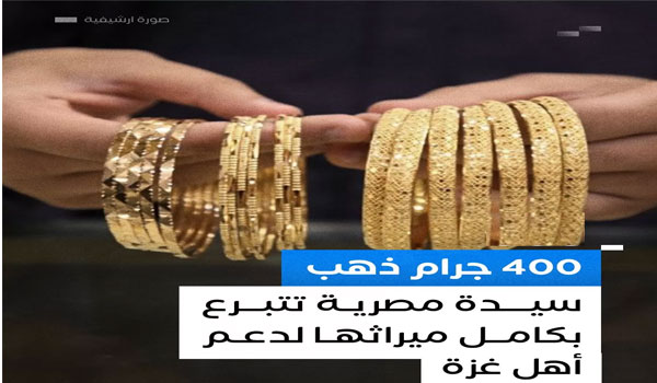 وذكرت السيدة المصرية المتبرعة: “والله لو معايا تاني لأتبرع” لتلقى إشادة واسعة من رواد منصات التواصل، حيث قدمت 400 غرام ذهب إلى الأزهر الشريف لصالح حملة دعم فلسطين.