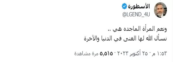 وكتب حساب “الأسطورة” عن الحاجة نصرة: “ونعم المرأة الماجدة هي .. نسأل الله لها الغنى في الدنيا والآخرة”.