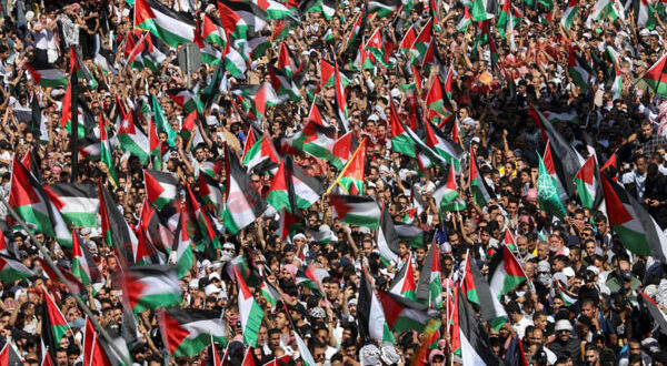 وأظهرت مشاهد عبر مواقع التواصل الاجتماعي، حشوداً بالآلاف في العاصمة الأردنية عمّان، تهتف لفلسطين وغزة والمسجد الأقصى.