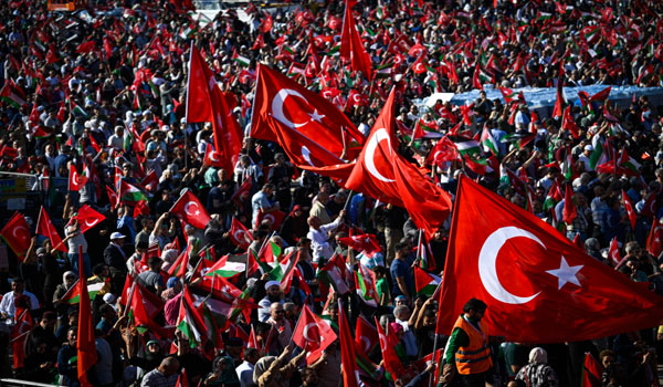 قال الرئيس التركي رجب طيب أردوغان، السبت، 28 أكتوبر 2023 إن بلاده عازمة على إعلان إسرائيل “مجرمة حرب” للعالم أجمع، وأضاف خلال تجمع جماهيري حاشد لنصرة فلسطين في إسطنبول: “كنا نعلم أن إسرائيل ستنزعج من قولنا إن حماس ليست منظمة إرهابية، ومع ذلك عبرنا عن موقفنا بوضوح”.