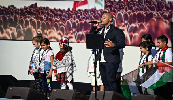 ثم وجه سؤاله إلى الحضور في الحشد الكبير أمامه: “هل نحن مستعدون أيضاً؟ إذا لزم الأمر هل يمكننا القيام بذلك؟ (هل يمكنني الاعتماد عليك للالتزام بهذا؟)”، ليرد الجمهور بهتافات التكبير ونعم، أي أنهم مستعدون لتلبية نداءات الدفاع عن أهالي غزة.